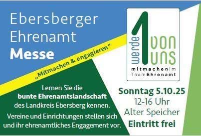 Ehrenamt Messe 2025 am 05.10.2025 von 12 - 16 Uhr 24. August 2025: Lernen Sie die bunte Ehrenamtslandschaft des Landkreises Ebersberg kennen. Vereine und Einrichtungen stellen sich und ihr ehrenamtliches Engagement vor. Ehrenamt Messe 2025 Mitmachen & engagieren. Wir freuen uns auf Ihr Interesse!